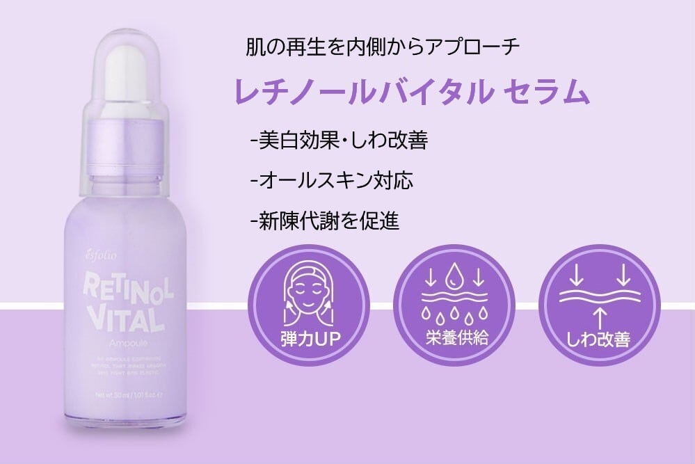 レチノールが肌のターンオーバーを促進させ、しみやしわに効果的。